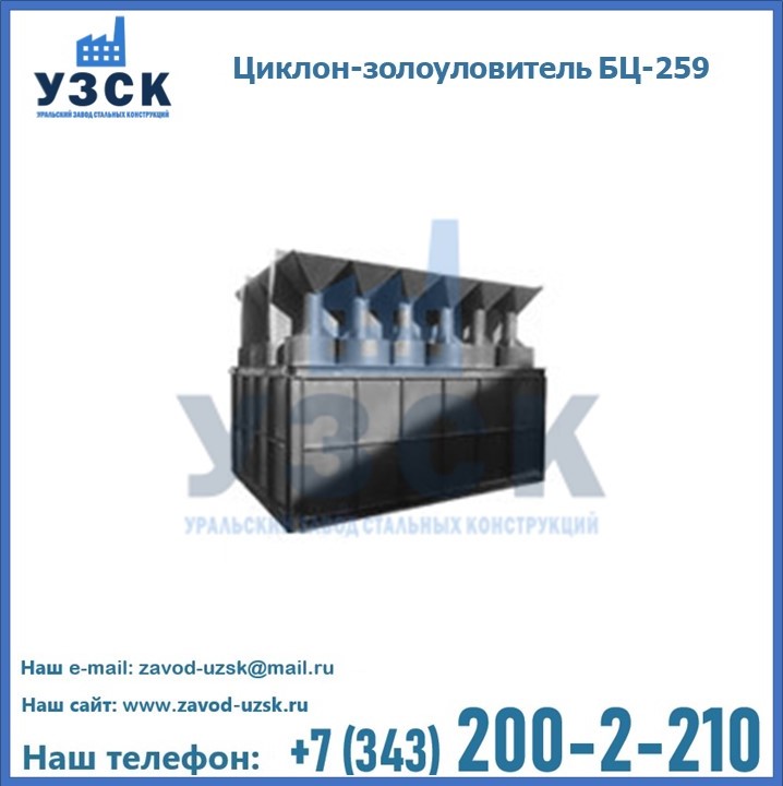 Если вы планируете купить то или иное оборудование, например, циклоны-золоуловители БЦ-259, то рекомендуем заказать данный товар на сайте УЗСК. Мы производим и реализуем продукцию высокого качества по приемлемой цене. Эксперты Уральского Завода Стальных Конструкций в Ижевске проконсультируют вас по всем вопросам, помогут сделать выбор и оформить заказ без лишних временных затрат. Мы гарантируем соответствие нашей продукции всем требованиям ГОСТ и ТУ, а также износостойкость и высокую производительность предлагаемого оборудования. Если требуется изготовить циклон нестандартных размеров, то такой вариант выполнения заказа тоже предусмотрен, так как предприятие имеет собственные производственные площади и надежных поставщиков. На все поставляемое или производимое оборудование имеются чертежи и прочая техническая документация. Заказать и купить циклоны или прочее оборудование высокого качества и по доступной цене можно через наш сайт или по указанному в разделе «Контакты» телефону.